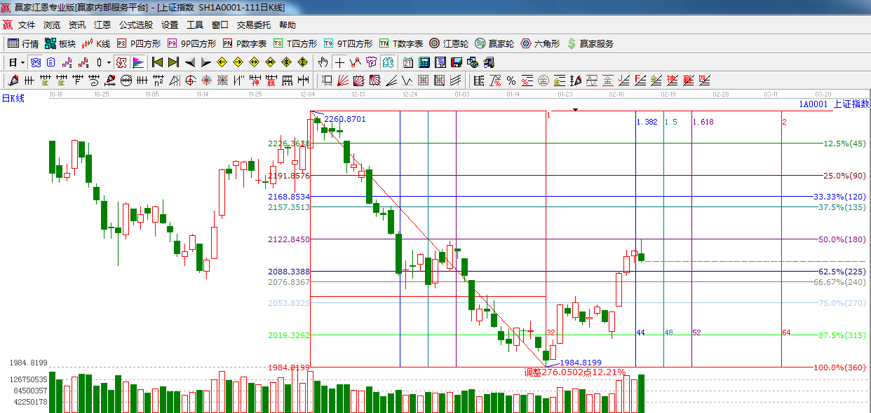 ☆ 依據(jù)贏家江恩系統(tǒng)黃金時(shí)間周期線提示:今日是前幾天提到的時(shí)間窗口,指數(shù)沖高回落,收倒垂頭線,短期注意風(fēng)險(xiǎn),下一個(gè)江恩時(shí)間窗口是2月18日(黃金時(shí)間1.5的時(shí)間窗口)。