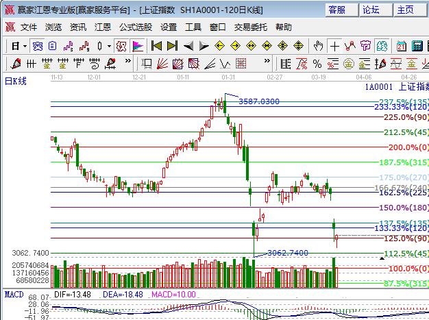 昨日三大指數(shù)均低開快速回探后震蕩走高,創(chuàng)業(yè)板長陽基本上可確立短期低點(diǎn)已形成,滬深指數(shù)探弱勢外軌線企穩(wěn),市場賺錢效應(yīng)較高,熱門股受短線資金追捧。從板塊上看,軍工、集成電路、國產(chǎn)軟件、醫(yī)療器械等概念板塊漲幅居前,種植業(yè)、養(yǎng)殖業(yè)、銀行、鋼鐵等板塊跌幅居前。技術(shù)方面,隔夜道指走高將助推今日早盤高開,滬指盤中預(yù)計會有圍繞百分比120度與135度3159-3174區(qū)間震蕩的可能,上方缺口3188與整數(shù)關(guān)口3200將成為盤中阻力,創(chuàng)業(yè)板今日看點(diǎn)1810這里是否突破能站穩(wěn),此位置是日、周趨勢拐點(diǎn)重要位置,預(yù)計創(chuàng)業(yè)板短期還有所反復(fù)確認(rèn)生命線1760位置,創(chuàng)藍(lán)籌持續(xù)走強(qiáng)的觀點(diǎn)不變,日、周趨勢在生命線以上,業(yè)績持續(xù)高增長個股可見陰線吸貨(上周六談到強(qiáng)勢二買模式已可使用)。今日支撐3157、3146,今日阻力3189、3200,僅供參考,不構(gòu)成任何投資建議。