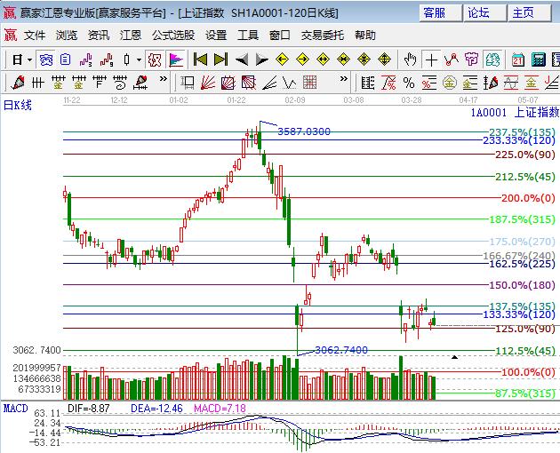 ①滬指日線弱勢(shì)下軌線走平是一個(gè)積極的信號(hào),從目前的走勢(shì)看這一信號(hào)并不明顯,多周期處于弱勢(shì)情況,百分比90度位置是3125點(diǎn),百分比強(qiáng)支撐位是3080附近,其它兩個(gè)指數(shù)未有明確的信號(hào)前,投資者不易重倉操作。