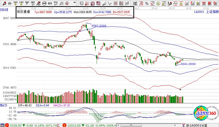 【贏家江恩點評:極反通道工具可幫助用戶解決大盤或個股趨勢判斷、價格買賣點,在日內(nèi)差價高拋低吸方面更能提示其優(yōu)勢?!?/strong>