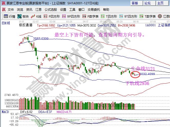 ☆依據(jù)贏(yíng)家江恩理論系統(tǒng)極反通道提示:大盤(pán)多周期K線(xiàn)處于生命線(xiàn)下弱勢(shì)區(qū)域,短周期K線(xiàn)與極反通道生命線(xiàn)與弱勢(shì)下軌線(xiàn)都有距離,對(duì)于上下皆有空間的位置,特別是處于弱勢(shì)區(qū)域不操作為好,線(xiàn)下弱勢(shì)休息為主。
