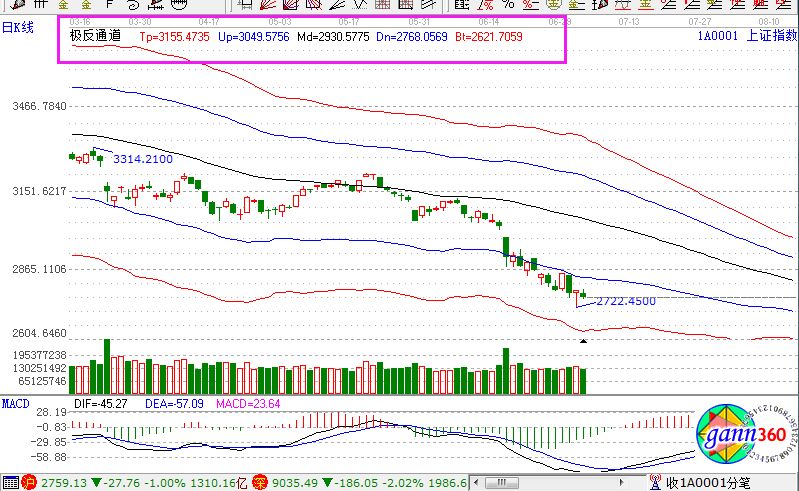 滬指跌1.00%,報(bào)2759點(diǎn);深成指跌2.02%,報(bào)9035點(diǎn);創(chuàng)業(yè)板指跌2.58%,報(bào)1565點(diǎn)。盤面上看,機(jī)場(chǎng)航運(yùn)、鋼鐵、黃金、農(nóng)林牧漁、深圳國資改革等板塊漲幅居前;次新股、網(wǎng)絡(luò)安全、海南、紡織制造、數(shù)字中國、人臉識(shí)別等板塊跌幅居前。滬股通凈流出2.8億,深股通凈流出10億。相應(yīng)的極反通道指標(biāo)的支撐壓力提示,如下圖所示: