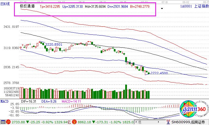 滬指跌0.92%,報(bào)2733點(diǎn);深成指跌1.92%,報(bào)8862點(diǎn);創(chuàng)業(yè)板指跌2.10%,報(bào)1532點(diǎn)。盤面上看,粵港澳大灣區(qū)、鋼鐵、物流、分散染料、稀土永磁、煤炭等板塊跌幅居前。滬股通凈流入18億,深股通凈流入5億。相應(yīng)的極反通道指標(biāo)的支撐壓力提示,如下圖所示: