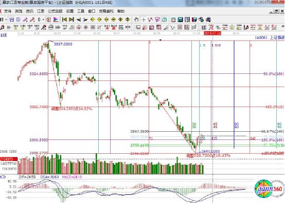★依據(jù)贏家江恩理論系統(tǒng)江恩百分比線提示:周五指數(shù)在百分比支撐2823處展開震蕩,2800-2823仍是當(dāng)前重要支撐區(qū)間,穩(wěn)住2823,將繼續(xù)向上方的240度線2867運(yùn)行。