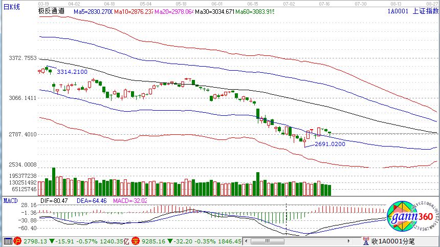 滬指跌0.57%,報收2798點;深成指跌0.35%,報收9285點;創(chuàng)業(yè)板漲0.29%,報收1621點。從板塊漲幅上看,石墨烯、農機、養(yǎng)殖、化工新材料、5G、互聯(lián)網彩票等漲幅居前;鋼鐵、超級品牌、白酒、煤炭、海南、醫(yī)藥電商等板塊跌幅居前。滬股通凈流出9000萬,深股通凈流出4億。相應的極反通道指標的支撐壓力提示,如下圖所示: