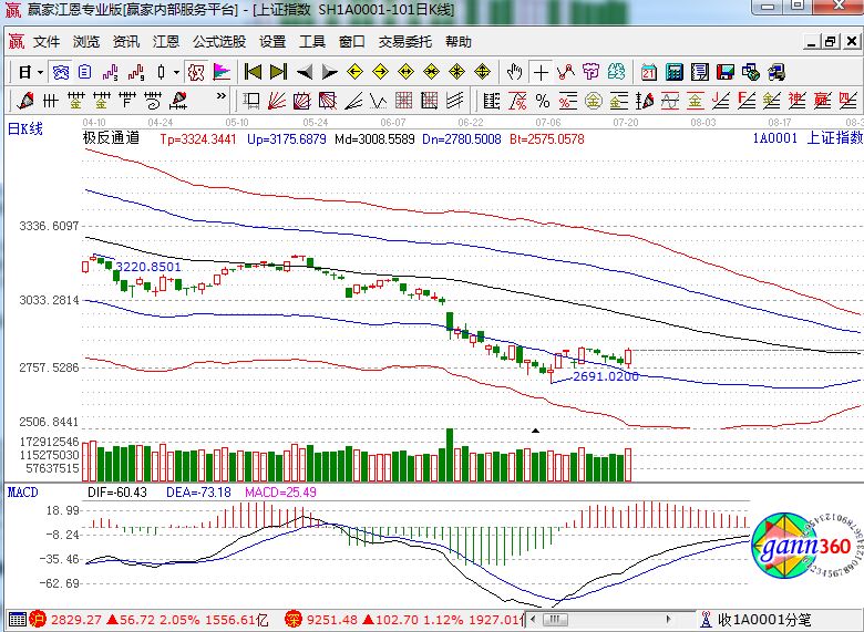 滬指漲2.05%,報收2829點;深成指漲1.12%,報收9251點;創(chuàng)業(yè)板漲1.23%,報收1609點。從板塊漲幅上看,銀行、保險、國產(chǎn)軟件、證券、數(shù)字中國、燃氣水務、工業(yè)互聯(lián)網(wǎng)等板塊上漲;在線旅游、養(yǎng)殖等少數(shù)板塊下跌。滬股通凈流入5.5億,深股通凈流入17億。相應的極反通道指標的支撐壓力提示,如下圖所示: