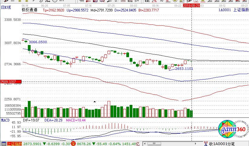 從盤面上看,知識產(chǎn)權(quán)保護(hù)、養(yǎng)殖、網(wǎng)絡(luò)安全、新疆振興、ST板塊、雄安新區(qū)等板塊漲幅居前;鈦白粉、高送轉(zhuǎn)、稀土永磁、新材料、蘋果概念、次新股等板塊跌幅居前。滬股通凈流入18億,深股通凈流入4億。相應(yīng)的極反通道指標(biāo)的支撐壓力提示,如下圖所示: