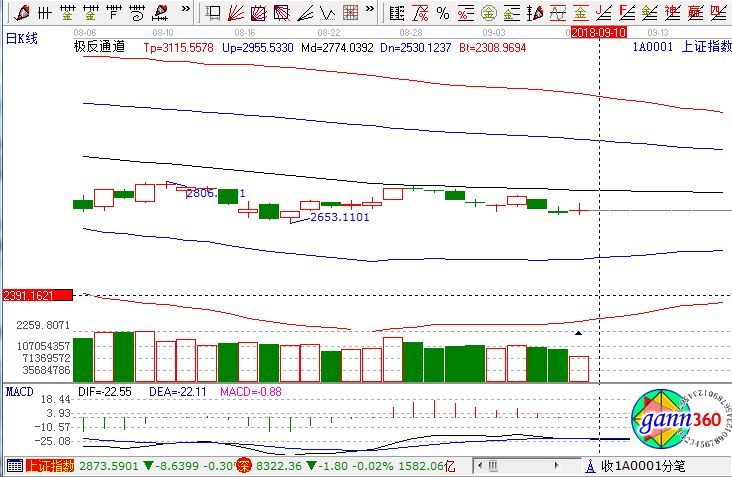 截至收盤,滬指漲0.40%,報(bào)收2702點(diǎn);深成指跌0.02%,報(bào)收8322點(diǎn);創(chuàng)業(yè)板漲0.17%,報(bào)收1425點(diǎn)。從盤面上看,黃金、煤炭、機(jī)場(chǎng)航運(yùn)、醫(yī)藥電商、鈦白粉、水泥等板塊漲幅居前;電子發(fā)票、國(guó)產(chǎn)軟件、芯片、網(wǎng)絡(luò)安全、5G、集成電路等板塊跌幅居前。滬股通凈流出500萬(wàn),深股通凈流出1.2億。相應(yīng)的極反通道指標(biāo)的支撐壓力提示,如下圖所示: