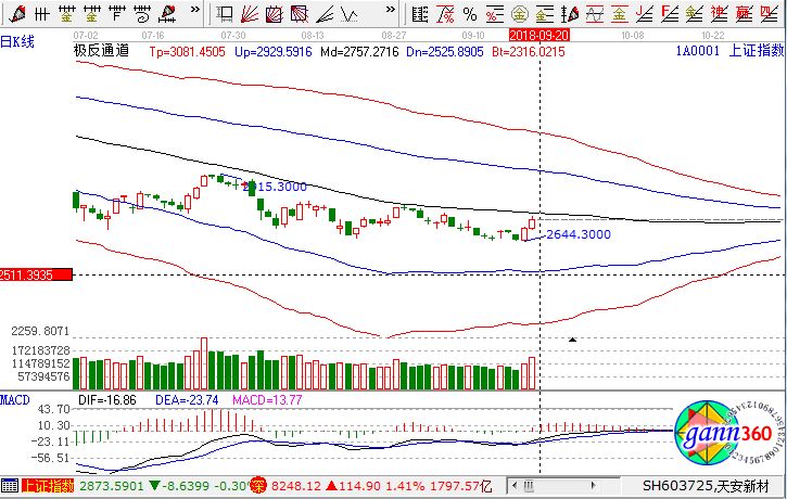 滬指漲1.14%,報收2730點;深成指漲1.41%,報收8248點;創(chuàng)業(yè)板漲1.10%,報收1392點。從盤面上看,廣東自貿(mào)區(qū)、超級品牌、頁巖氣、集成電路、粵港澳大灣區(qū)、房地產(chǎn)、白酒、芯片等板塊上漲。滬股通凈流入7.7億,深股通凈流入1.5億。相應(yīng)的極反通道指標的支撐壓力提示,如下圖所示: