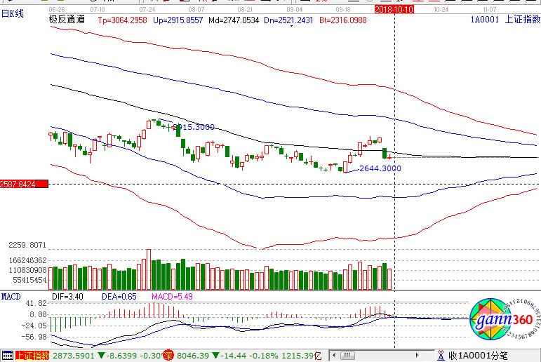 滬指漲0.17%,報(bào)收2721點(diǎn);深成指跌0.18%,報(bào)收8046點(diǎn);創(chuàng)業(yè)板跌0.57%,報(bào)收1345點(diǎn)。從盤面上看,石油采掘、煤炭、頁巖氣、次新股、黃金等板塊領(lǐng)漲;機(jī)場(chǎng)航運(yùn)、軍工、集成電路、國產(chǎn)軟件、醫(yī)藥商業(yè)等板塊領(lǐng)跌。滬股通凈流出21億,深股通凈流出6.7億。相應(yīng)的極反通道指標(biāo)的支撐壓力提示,如下圖所示: