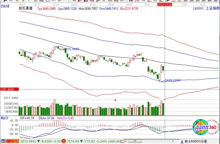 滬指跌2.26%,報(bào)收2594點(diǎn);深成指跌2.24%,報(bào)收7574點(diǎn);創(chuàng)業(yè)板跌1.74%,報(bào)收1292點(diǎn)。從盤面上看,ST板塊、黃金、證券、海南、自由貿(mào)易港等板塊領(lǐng)漲;白酒、分散染料、國產(chǎn)軟件、高送轉(zhuǎn)、機(jī)場(chǎng)航運(yùn)、半導(dǎo)體、粵港澳大灣區(qū)等板塊領(lǐng)跌。滬股通凈流入3億,深股通凈流出5億。相應(yīng)的極反通道指標(biāo)的支撐壓力提示,如下圖所示: