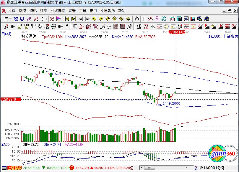 滬指漲0.13%,報收2606點;深成指漲1.14%,報收7567點;創(chuàng)業(yè)板漲0.84%,報收1286點。從盤面上看,人工智能、人臉識別、黃金、云計算、手游等板塊領(lǐng)漲;鋼鐵、銀行、煤炭、ST板塊、石墨電極等板塊領(lǐng)跌。滬股通凈流入57億,深股通凈流入29億。相應(yīng)的極反通道指標(biāo)的支撐壓力提示,如下圖所示: