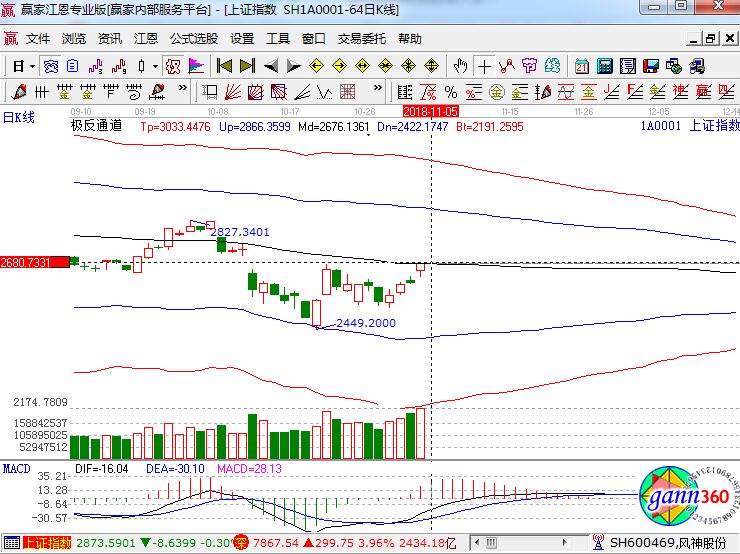 滬指漲2.70%,報(bào)收2676點(diǎn);深成指漲3.96%,報(bào)收7867點(diǎn);創(chuàng)業(yè)板漲4.82%,報(bào)收1348點(diǎn)。從盤面上看,機(jī)場(chǎng)航運(yùn)、白酒、化工新材料、知識(shí)產(chǎn)權(quán)保護(hù)、健康中國(guó)、集成電路等板塊領(lǐng)漲。滬股通凈流入113億,深股通凈流入65億。相應(yīng)的極反通道指標(biāo)的支撐壓力提示,如下圖所示: