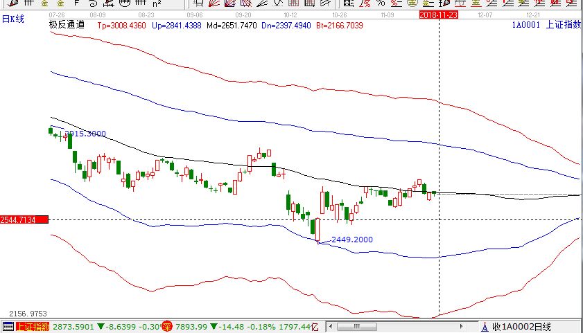滬指跌0.23%,報收2645點;深成指跌0.18%,報收7893點;創(chuàng)業(yè)板跌0.66%,報收1354點。從盤面上看,高送轉(zhuǎn)、汽車整車、ST板塊、傳媒、知識產(chǎn)權(quán)保護、汽車零部件等板塊漲幅居前;證券、物流、鋼鐵、自由貿(mào)易港、深圳國資改革、債轉(zhuǎn)股等板塊跌幅居前。滬股通凈流出3.6億,深股通凈流出1500萬。相應(yīng)的極反通道指標(biāo)的支撐壓力提示,如下圖所示: