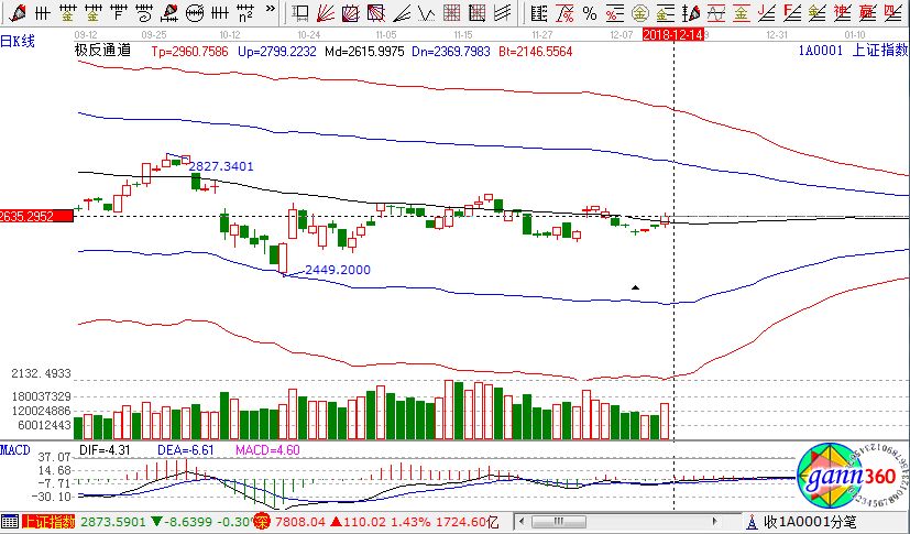 滬指漲1.23%,報收2634點;深成指漲1.43%,報收7808點;創(chuàng)業(yè)板漲0.73%,報收1348點。盤面上看,高鐵、水泥、家用電器、5G、建筑材料、白酒等板塊漲幅居前;高送轉(zhuǎn)、農(nóng)業(yè)、ST板、北汽新能源等板塊跌幅居前。滬股通凈流入36億,深股通凈流入32億。相應(yīng)的極反通道指標(biāo)的支撐壓力提示,如下圖所示: