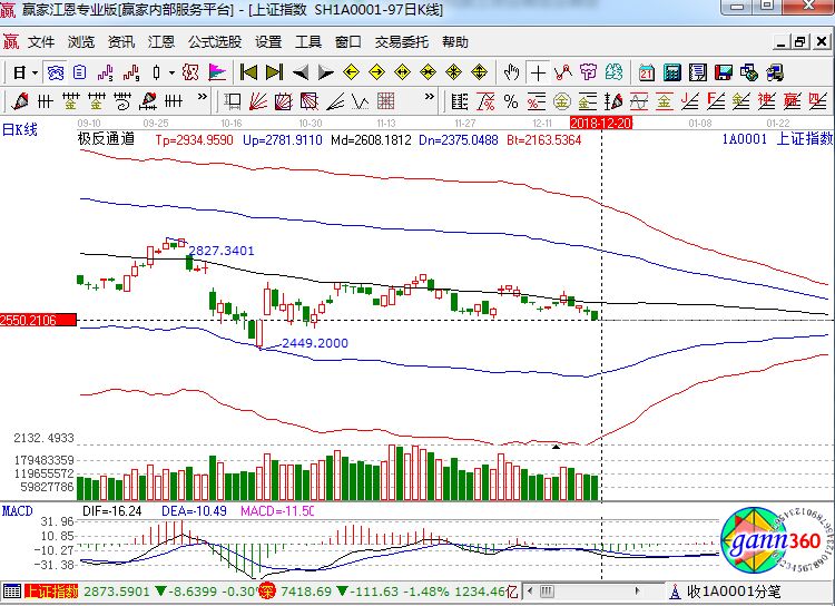 滬指跌1.05%,報(bào)收2549點(diǎn);深成指跌1.48%,報(bào)收7418點(diǎn);創(chuàng)業(yè)板跌1.90%,報(bào)收1268點(diǎn)。盤(pán)面上看,豬肉、石油、醫(yī)療器械、自由貿(mào)易港、醫(yī)藥電商等板塊跌幅居前。滬股通凈流出6900萬(wàn),深股通凈流出4億。相應(yīng)的極反通道指標(biāo)的支撐壓力提示,如下圖所示: