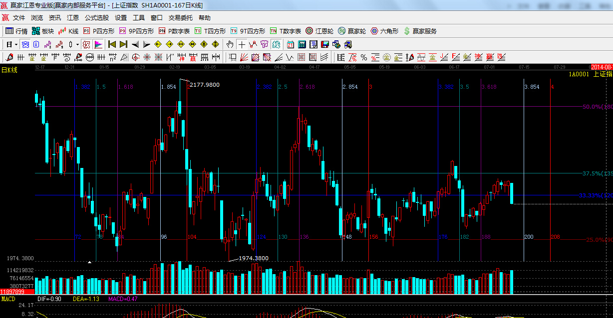 江恩看盤綜述:依據(jù)贏家江恩技術(shù)工具分析得出:指數(shù)三角形收斂形態(tài)預(yù)計(jì)再近一周給出周線級(jí)別的方向選擇,再次期間操作上以短線、波段結(jié)合操作,倉(cāng)位上保持在3-5成。