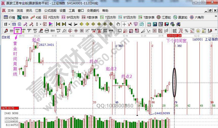 ☆依據(jù)贏家江恩理論系統(tǒng)黃金時間周期線提示:以最近兩組高高點做圖,第一組(2827和2703),第二組是(2666和2645)做黃金時間周期線,下個時間窗口1月23、24號。