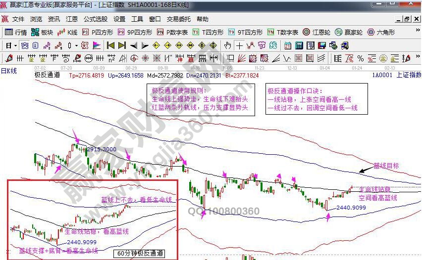 ★依據(jù)贏家江恩理論系統(tǒng)極反通道提示: 日線連續(xù)兩日收在生命線上方,按照規(guī)則量能保持且3天回踩不破,則確認(rèn)生命線突破的有效性,空間上看高藍(lán)線2680方向。附60分鐘極反通道圖顯示,股價運(yùn)行到藍(lán)線2620壓力區(qū),短線不能強(qiáng)勢突破,仍有回落生命線需求。則,短線支撐參考生命線2579點,壓力參考60分鐘藍(lán)線2630點。