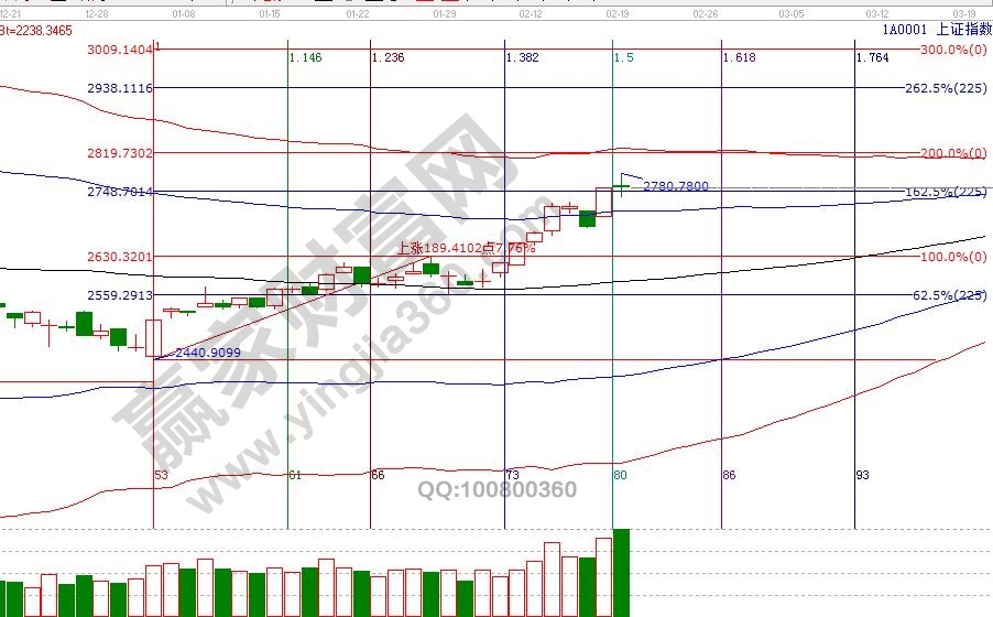 大盤(pán)在極反通道藍(lán)色上軌線與紅色外軌線構(gòu)造的超強(qiáng)通道內(nèi)運(yùn)行,此區(qū)域代表市場(chǎng)熱度較強(qiáng),板塊、個(gè)股均有機(jī)會(huì)輪番表現(xiàn),享受市場(chǎng)瘋狂的同時(shí),但要小心瘋狂背后不斷積累的風(fēng)險(xiǎn),目前工具還未出現(xiàn)警示信號(hào),按規(guī)則穩(wěn)健者關(guān)注15分鐘生命線得失,激進(jìn)者關(guān)注60分鐘生命線得失;空間點(diǎn)位上,江恩百分比、江恩價(jià)格四方形提示,2730、2720是支撐,2765、2778為壓力,時(shí)間窗口是28號(hào)。操作策略,大盤(pán)日K線從強(qiáng)勢(shì)通道進(jìn)入超強(qiáng)通道,個(gè)股波動(dòng)空間增大,分批高拋藍(lán)色上軌線或紅色外軌線壓力個(gè)股,倉(cāng)位切換至生命線附近有量能配合的個(gè)股,整體倉(cāng)位保持在5-6成。