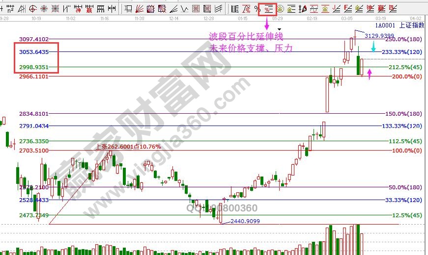 ☆依據(jù)贏家江恩理論系統(tǒng)波段百分比延伸線提示:以2440點為起點,2703點為終點做圖,2倍零度位2966點同盤中最低僅相差3個點,明日盤中關(guān)注45度2998點支撐,120度3053點為壓力。