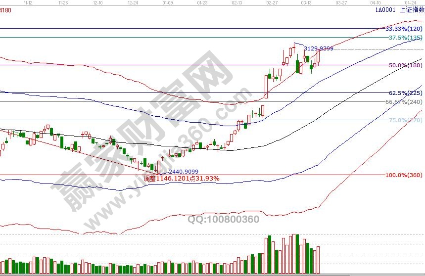 大盤日K線突破江恩輪中輪提示的3051點(diǎn),運(yùn)行路徑選擇強(qiáng)勢(shì)走法圍繞紅線震蕩上攻,江恩時(shí)間周期顯示本月時(shí)間窗口是20、26號(hào),重要時(shí)間窗口是26號(hào)【歷史時(shí)間神奇判斷:7號(hào)時(shí)間窗短線見(jiàn)高點(diǎn)調(diào)整,14號(hào)時(shí)間窗口短線結(jié)束修整】;空間上波段百分比延伸線提示,19號(hào)盤中壓力是225度、240度3130-3141區(qū)間,支撐是3074點(diǎn)。操作策略,圍繞紅線震蕩期間,指數(shù)不破江恩輪中輪四方形3051點(diǎn),短線延續(xù)做多到下個(gè)時(shí)間窗口,倉(cāng)位保持4-5成。