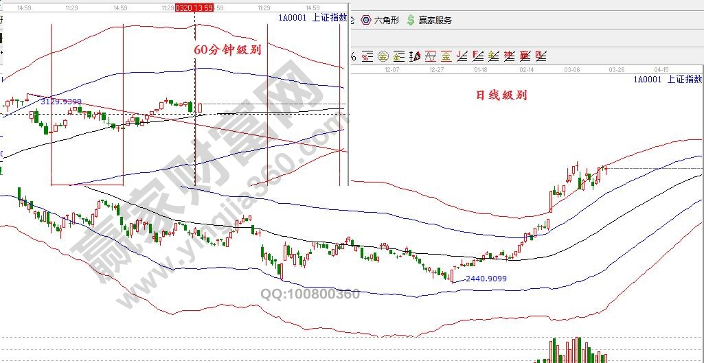 大盤日線繼續(xù)圍繞極反通道紅色外軌線震蕩運行,短期繼續(xù)關注60分鐘生命線,不破趨勢延續(xù)??臻g上,3051為支撐點,3130為阻力點;時間上,關注本月26日。對應操作上,指數(shù)高位震蕩,不破3051,可繼續(xù)把握個股機會。節(jié)奏上,逢高兌現(xiàn)持續(xù)上攻遇阻品種,切換至生命線附近滯漲股,倉位保持4成。