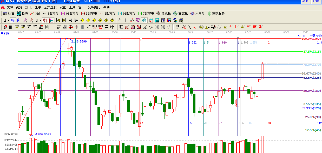 ☆依據(jù)贏家江恩系統(tǒng)黃金時(shí)間周期線提示:下一時(shí)間窗口為7月28日。