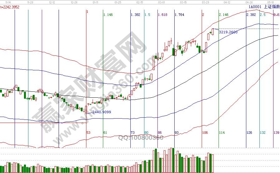 大盤日K線不斷刷新近期高點,極反通道紅色外軌線是3250附近,站穩(wěn)一線看高一線規(guī)則,此線是確認藍線后反彈的目標位;空間點位上,輪中輪、價格四方形提示,3196-3175為盤中支撐,3240-3254為盤中壓力,4月5號為日線時間窗口,考慮假期因素,時間窗口效應(yīng)會提前至4或推遲下周一8號。操作策略,日線再度進入超強通道,穩(wěn)健者倉位保持在5成,激進者倉位保持在7成,靠近紅色外軌線持倉遵守提高止賺位策略。