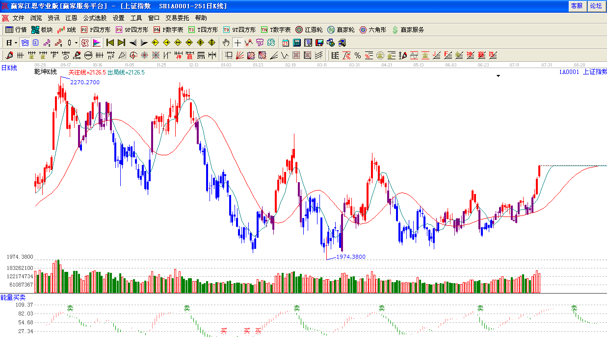 ★依據(jù)贏家江恩系統(tǒng)能量買賣提示:紅色能量柱繼續(xù)加上,較前期能量柱有略微背離跡象。