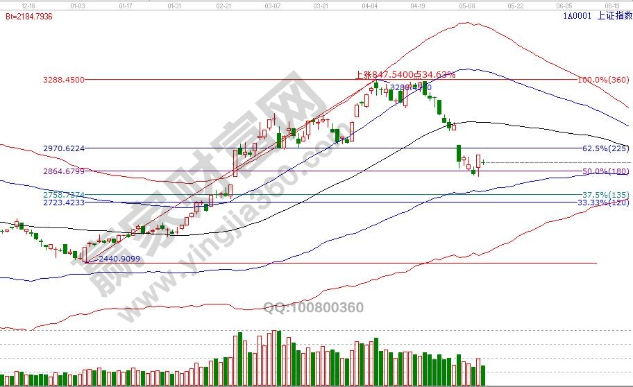 大盤黑色生命線下弱勢通道運行,5月第一個時間窗口8(9)號出現(xiàn)的時價共振短線反彈信號,截至今日收盤信號依然存在。按贏家江恩交易體系,此位置短線交易者有兩種決策應對,一種是通過止賺位進行操作,一種是用2840點多周期共振位來做底線。贏家江恩預判有一條消中之長,其長也漸微原則,這是低風險者需要遵守的,失守一線看低一線,藍色下軌線2770附近是參考位,盤中及時市場動態(tài)解讀在贏家江恩系統(tǒng)VIP學員區(qū)展開。本周五17號是5月第二個時間窗口,操作策略,指數(shù)擊破黑色生命線,藍色下軌線是回撤目標位,高風險者倉位3成,低風險者等待中期參考位。