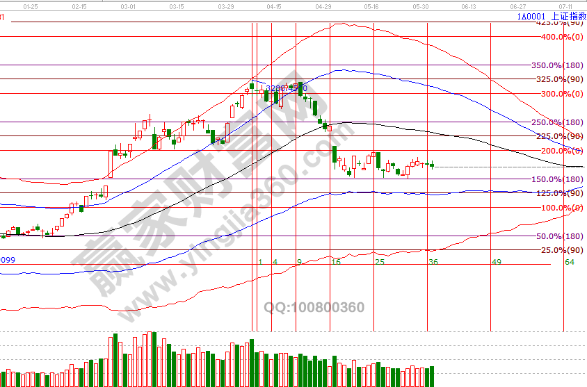江恩時間周期精準判斷出5月份市場拐點,4、5號是6月份第一個日線時間窗口,投資者明后兩天應關注好市場方向選擇;趨勢與空間結(jié)合判斷,目前整體處于反彈周期,上周進入反彈第一目標區(qū)2928-2960后量能不及回落,指數(shù)不破波段百分比延伸線二分位2834點反彈預期不變,待突破第一區(qū)間后反彈將全面展開。4號盤中壓力是135度2911點、180度2928點,盤中支撐是45度2877、0度2860點,6月時間窗口分別是4(5)號、13號、25號。操作策略,指數(shù)擊破黑色生命線進入弱勢區(qū)域,整體持倉保持在3-4成,做到進可攻退可守。