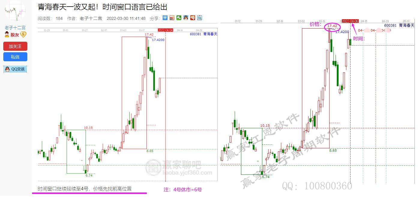 研究到最后,時(shí)價(jià)結(jié)合就是何時(shí)何價(jià)!青海春天贏家再次反復(fù)論證時(shí)價(jià)預(yù)測(cè)技術(shù)!一次次的走勢(shì)證明!30號(hào)預(yù)測(cè)上漲趨勢(shì)至下個(gè)時(shí)間窗4號(hào),價(jià)格找前高17.42元。