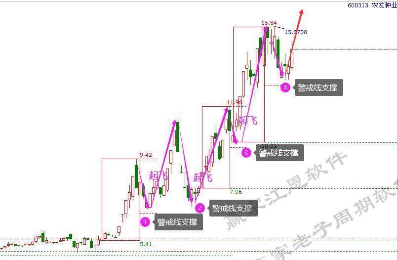 3. 11.96元形成上漲結(jié)構(gòu)后,再次回踩警戒線獲得支撐,第3次爆發(fā)創(chuàng)下歷史新高15.84元。(上漲空間54.81%。)