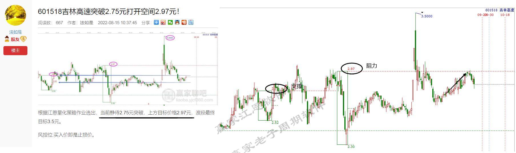 2.運(yùn)用十二宮價(jià)格做支撐阻力的判斷。(依據(jù)規(guī)則,買在支撐,賣在壓力。所以當(dāng)前支撐位選擇在突破2.75元為關(guān)注點(diǎn),江恩法則,一線站穩(wěn)看高一線。所以未來短線上方目標(biāo)為2.97,波段3.5元。)