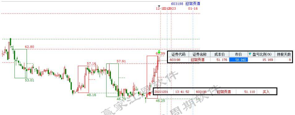 2.3確定時間:江恩理論的時間意義決定最終的趨勢方向,把握上漲概率,規(guī)避下跌風險,才能實現(xiàn)長久收益。在正確的時間進出場,提高資金利用率,最終就能達到以迎駕貢酒為例子的買完不墨跡,8天的逐步攀升!