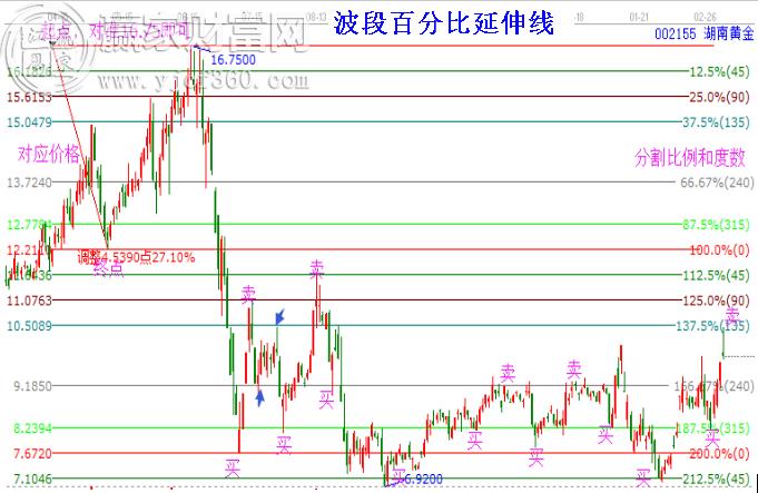 贏家江恩軟件中有系列的價格分析工具,這里推薦幾個最為常用的:江恩百分比、江恩波段百分比、波段百分比延伸線、K線價格四方形等。
