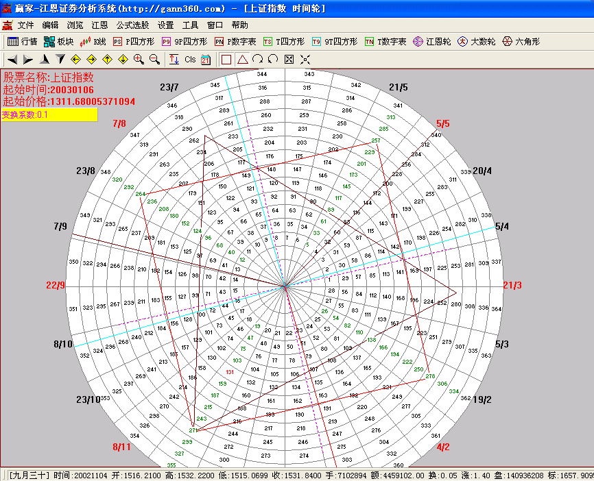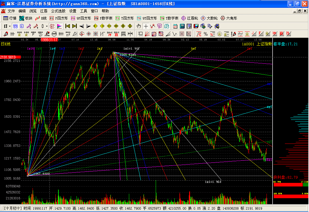 贏家江恩證券分析系統(tǒng),1999年研發(fā)問世,迄今22年,專注技術(shù)分析,專注江恩理論研究,專注散戶一整套股市盈利體系的構(gòu)建。該系統(tǒng)基于一整套的江恩理論設(shè)計(jì)研發(fā),適用于股票、期貨、外匯等市場,其分析方法獨(dú)特、分析指標(biāo)獨(dú)創(chuàng),一切遵從自然法則。軟件除實(shí)現(xiàn)了江恩經(jīng)典測市工具,如江恩輪、正方形、六角形、角度線、江恩計(jì)算器、時(shí)間及價(jià)格循環(huán)線等之外,還依據(jù)贏家團(tuán)隊(duì)多年的研究開發(fā)了許多極具實(shí)戰(zhàn)價(jià)值的工具和指標(biāo),如極反通道、24節(jié)氣、轉(zhuǎn)折日提示等。