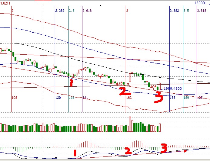 分形走勢(shì)有十余種,大盤(pán)的走勢(shì)最常見(jiàn)之一是經(jīng)過(guò)一波趨勢(shì)后產(chǎn)生的高高點(diǎn)的連線或低低點(diǎn)的連線而得出的第三個(gè)點(diǎn),通常配合著指標(biāo)的背離出現(xiàn),如2011年2月份高高點(diǎn)的連線產(chǎn)生的第三個(gè)點(diǎn)3086,隨后市場(chǎng)展開(kāi)了瘋狂下跌;當(dāng)前大盤(pán)自2012年7月出現(xiàn)低低點(diǎn)的連線產(chǎn)生的第三個(gè)點(diǎn)1998.48,MACD指標(biāo)走出低背離,量能略有不足節(jié)前最后一個(gè)交易日如無(wú)實(shí)質(zhì)性消息,短期以震蕩為主;