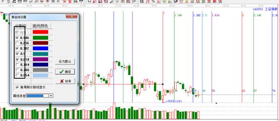 7.工具編輯。把鼠標移動到所選起點的位置,鼠標會變成十字狀,點擊右鍵-編輯黃金時間延伸線,出現(xiàn)如下圖,可根據(jù)自己的經(jīng)驗需求,留下你認為重要的分割位,點擊確定即可。經(jīng)常用的設(shè)為默認。