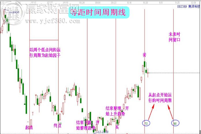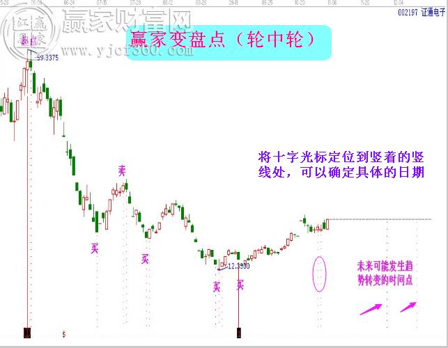 所謂時間變盤點,即市場走勢發(fā)生轉(zhuǎn)變的時間點。以大盤或個股歷史上重要的高、低點或高低點的運行周期作為起始因子,借助贏家專業(yè)的時間工具去畫圖,我們可以直觀的看到圖中有很多豎著的線,即是時間變盤點;當(dāng)前K線之后的豎線就是未來即將到達的時間窗口。每個時間窗口都可能形成頂部、底部或是趨勢轉(zhuǎn)變。在時間窗來臨前,密切關(guān)注盤面變化,結(jié)合具體的量價關(guān)系進行綜合判斷。當(dāng)時間點臨近時,股價縮量到支撐或放量突破壓力,則形成買點;當(dāng)時間點來臨時,股價縮量到壓力或放量跌破支撐,則形成賣點。