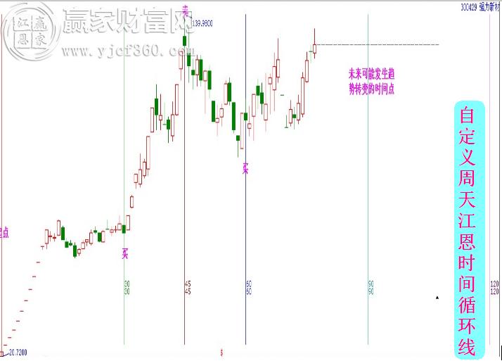 贏家江恩軟件中有系列的時間分析工具,推薦幾個最為常用的:贏家變盤點(輪中輪)、黃金時間周期線、自定義周天江恩江恩時間循環(huán)線、等距時間周期線、費氏時間循環(huán)線等。