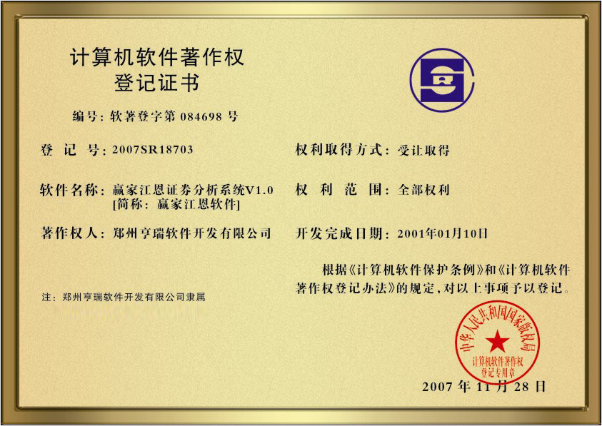 2007年獲得國(guó)家《計(jì)算機(jī)軟件著作登記證書》
